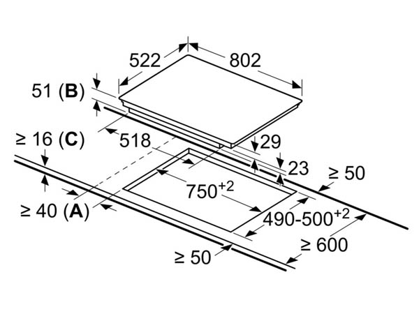 ớc hộc bếp: 560-562R x 490-500S x 51C mm