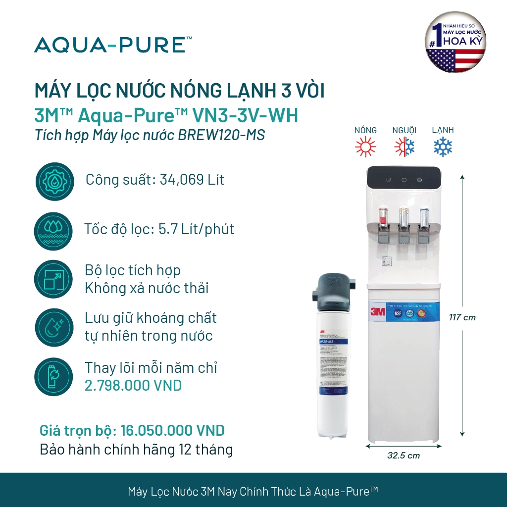MODEL: Cây Lọc Nước Nóng Lạnh VN3-3V-WH (Tích Hợp Máy Lọc Nước 3M™ Aqua-Pure™ BREW120-MS)