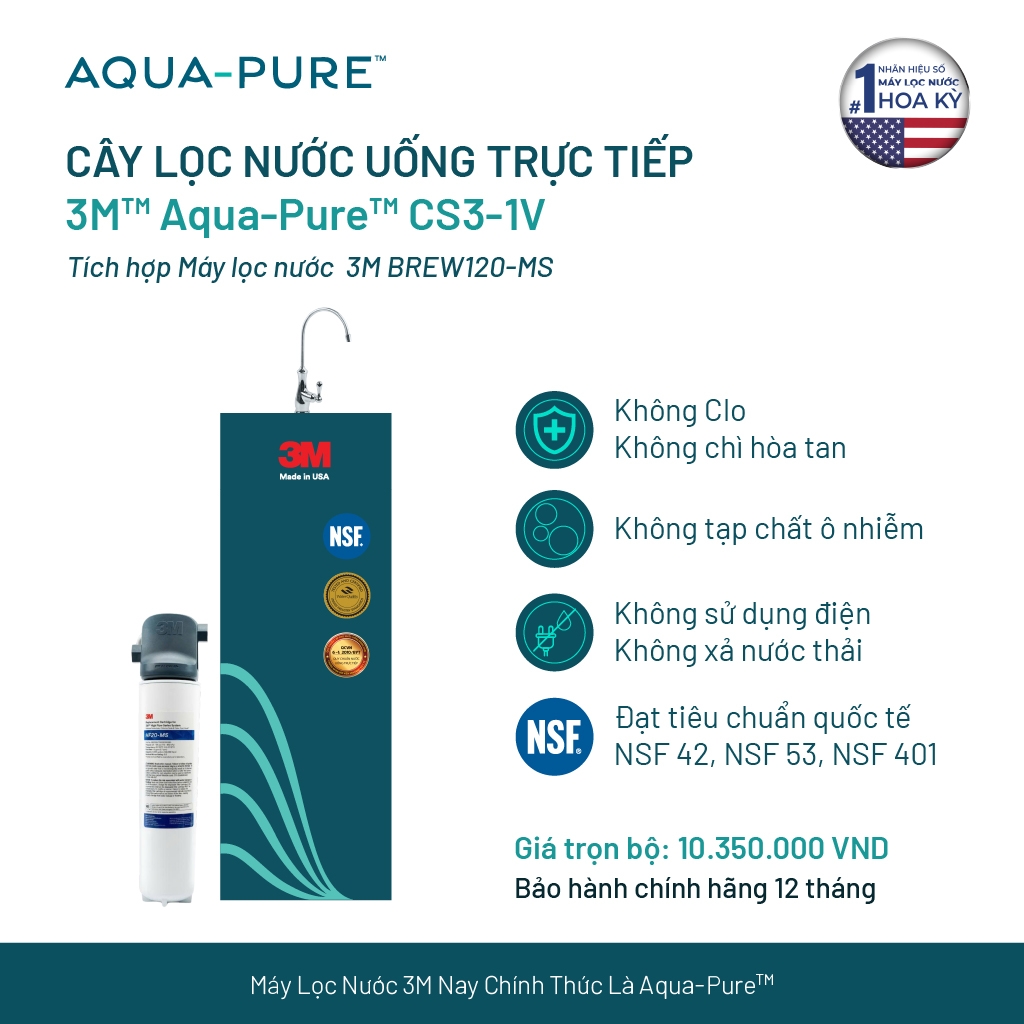 MODEL: Cây lọc nước uống trực tiếp 3M™ Aqua-Pure™ CS3-1V (Tích hợp Máy lọc nước 3M BREW120-MS)