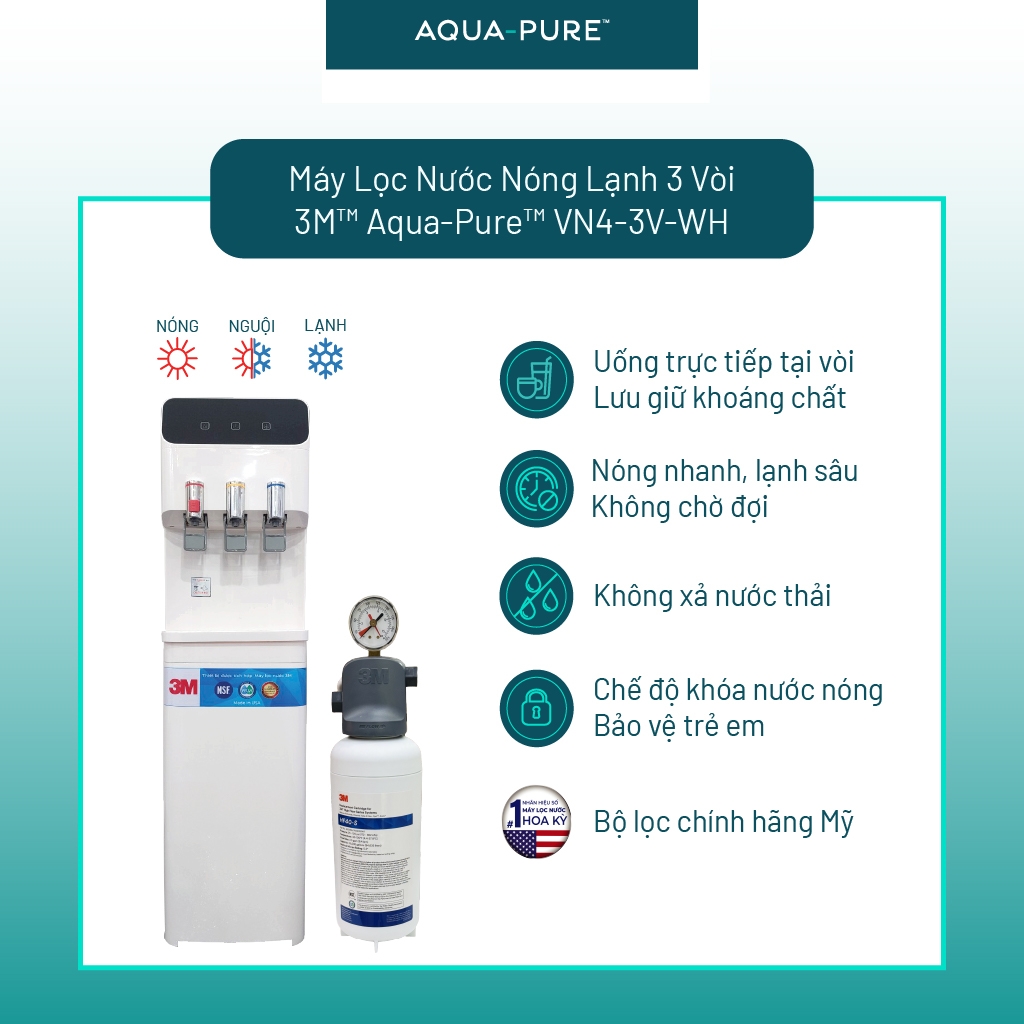MODEL: Cây lọc nước nóng lạnh VN4-3V-WH (Tích Hợp Máy Lọc Nước 3M™ Aqua-Pure™ ICE140-S)