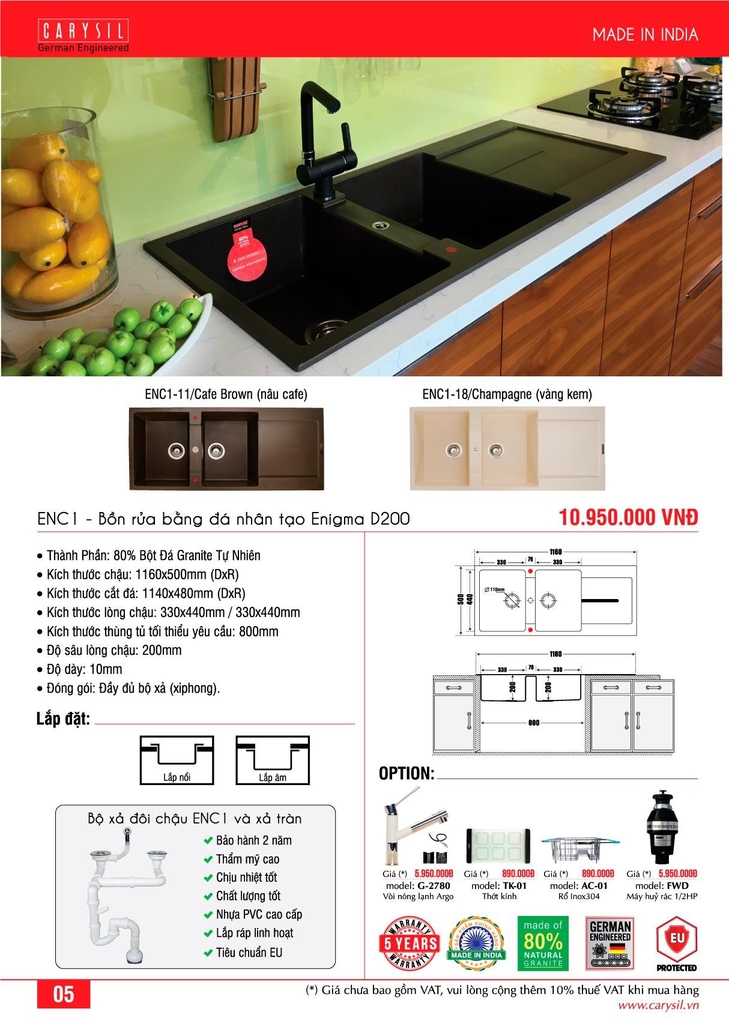 Kích thước cắt đá lắp nổi: 1140x480mm (DxR)
