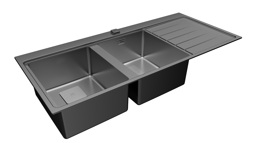 Chậu rửa inox Teka Zenit RS15 2B 1D được phủ một lớp sơn tĩnh điện, phần đáy chậu có một lớp cao su chống ồn giúp giảm thiểu âm thanh khó chịu khi sử dụng.
