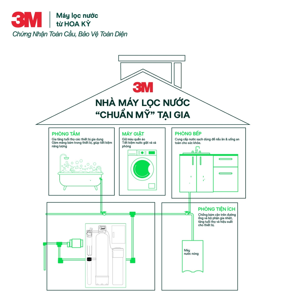 Hệ thống lọc và xử lý nước đầu nguồn cao cấp thương hiệu 3M dành cho biệt thự, villa, penthouse nhập khẩu chính hãng Mỹ