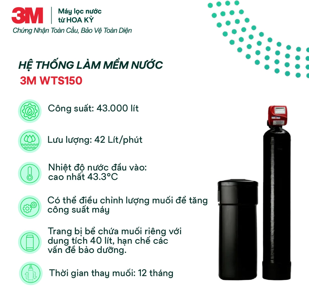Đối với thiết bị làm mềm nước 3MWTS150 (Chưa bao gồm muối)
