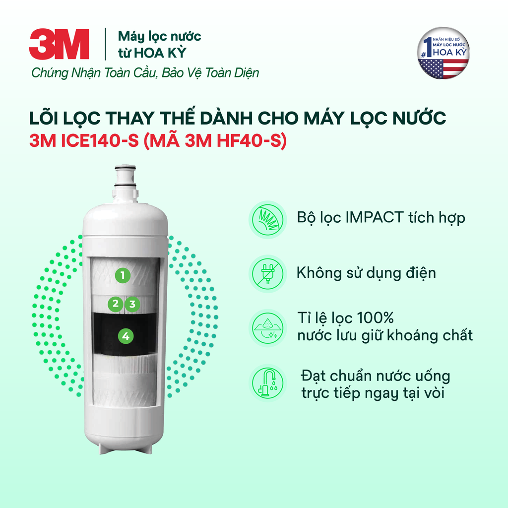 Lõi lọc thay thế cho máy lọc nước 3M ICE140-S mã HF40-S