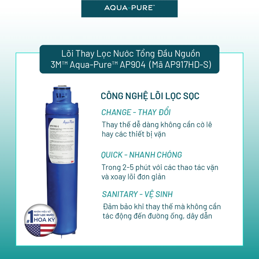 Về lõi lọc nước Aqua-Pure: Với kinh nghiệm hơn 90 năm trong ngành lọc nước, đồng thời dẫn đầu về công nghệ, 3M có thể kết hợp các thành phần yêu cầu hiệu suất khác nhau vào một bộ lọc duy nhất giúp tiết kiệm không gian, bảo vệ môi trường, thay lõi nhanh chóng, đảm bảo vệ sinh.