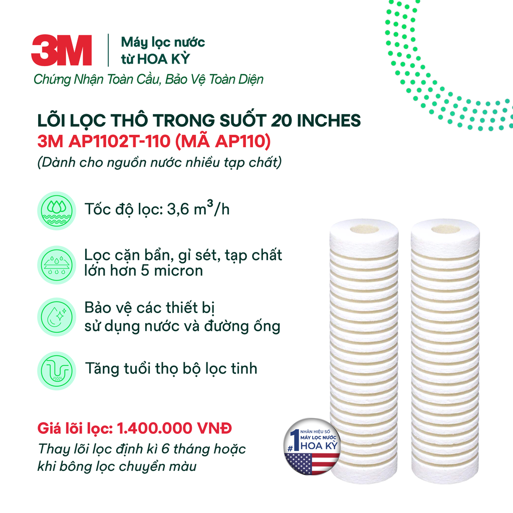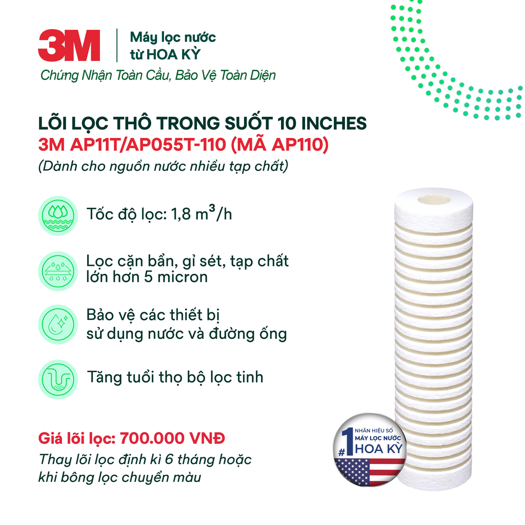 MODEL 3M AP110 - Lõi Thay Cho Bộ Lọc Thô 3M 10'' AP11T/AP055T