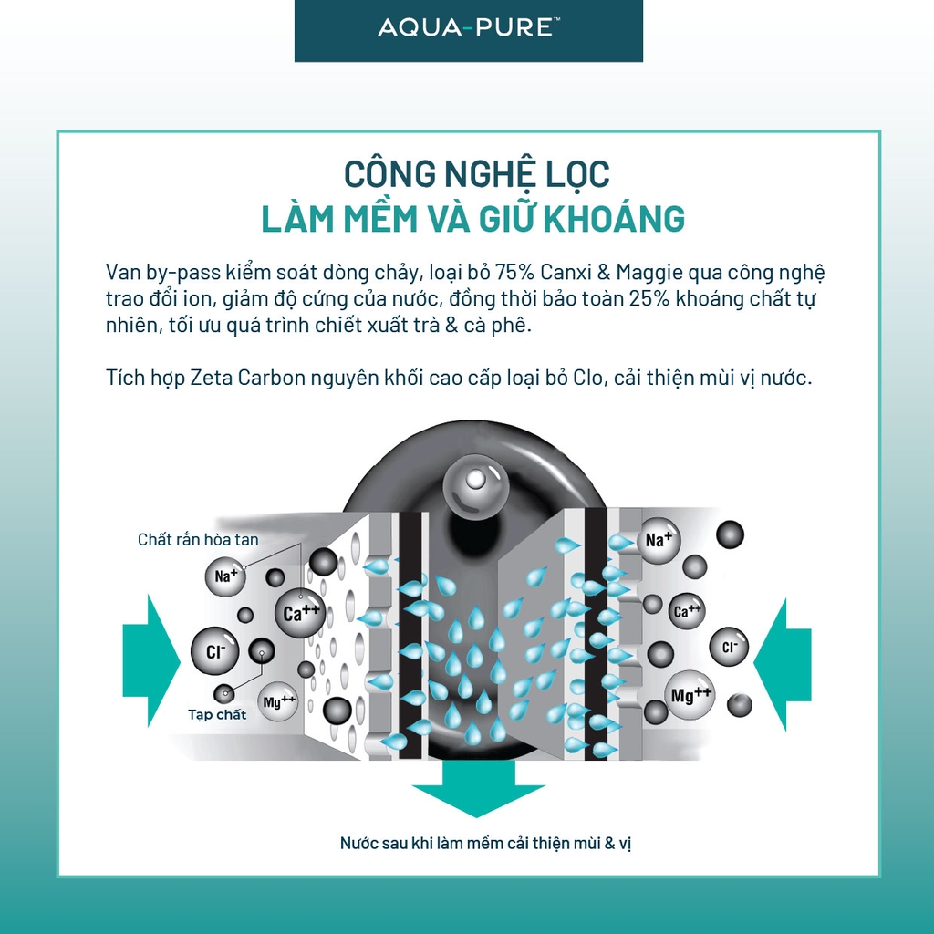 Làm mềm loại bỏ Canxi và Magiê trong nước, dành cho mọi độ cứng khác nhau giúp ổn định TDS