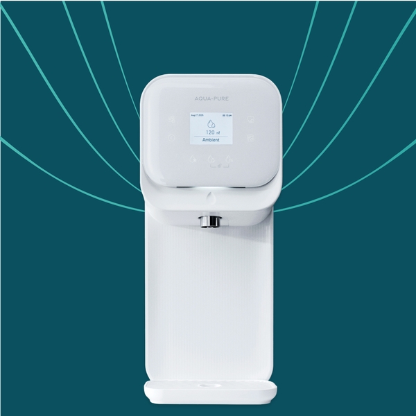 Tích hợp máy lọc nước Aqua-Pure USA – công nghệ lọc đạt chứng nhận NSF, loại bỏ clo, kim loại nặng, cặn bẩn và vi sinh vật đến 0.5 micron. Giữ lại khoáng chất tự nhiên có lợi cho sức khỏe.