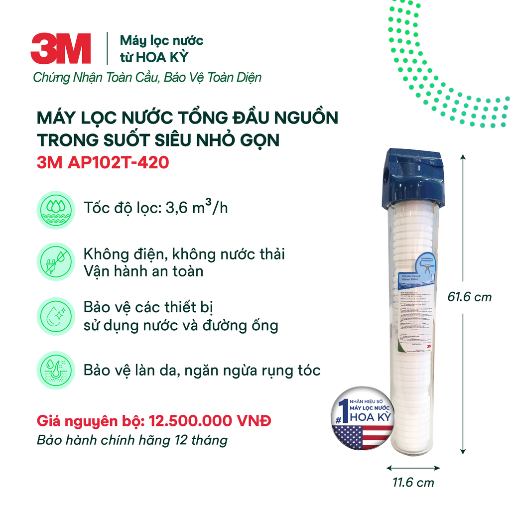 Máy lọc nước tổng đầu nguồn trong suốt 3M AP102T-420