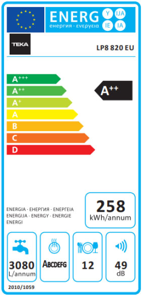 Máy rửa chén Teka LP8 820 được dán nhãn năng lượng A++ theo tiêu chuẩn châu Âu. Chỉ những thiết bị sử dụng năng lượng một cách tối ưu nhất, không có năng lượng hao phí thì mới được dán nhãn này. Mức A++ là một trong những mức tiết kiệm năng lượng cao. Bên cạnh đó, máy rửa chén LP8 820 còn có chương trình rửa Eco giúp rửa chén, dĩa sạch sẽ và nhanh chóng, đồng thời tiết kiệm tối đa lượng nước sử dụng.